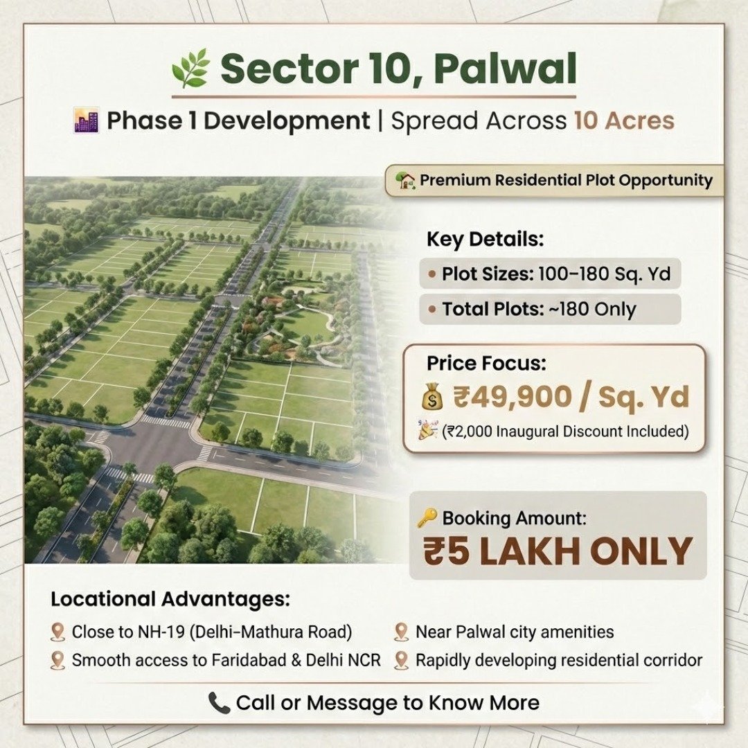 Flora Valley, Sector 10 – Palwal is a thoughtfully planned residential plotting project designed for smart investors and future homeowners. Phase 1 is spread across 10 acres and offers a limited collection of 180 premium plots, ensuring exclusivity and long-term value.